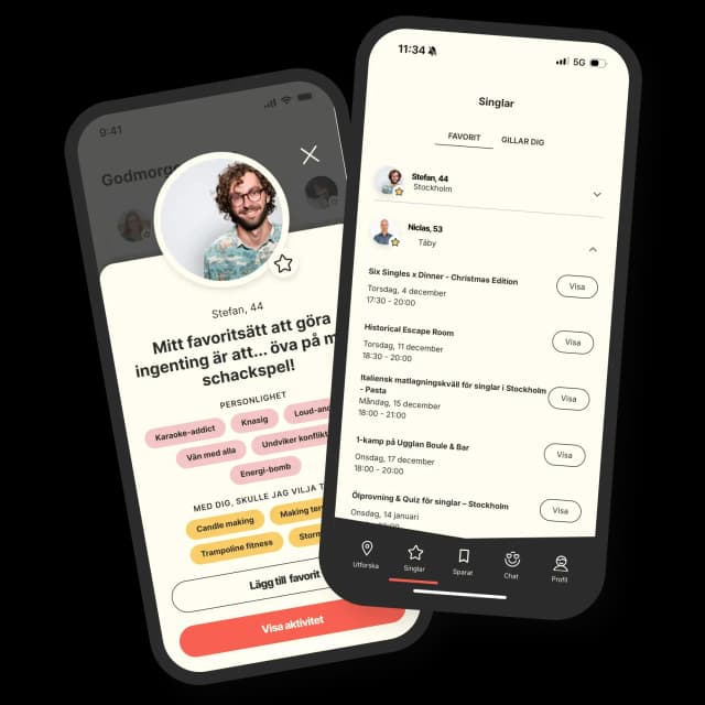 Slipp ghost och evighetssvajp. Med MinglMe träffar du singlar i Stockholm genom riktiga aktiviteter – från italiensk matlagning och padel till quiz, boule och kajak. Våra singelevent är skapade för att du ska träffa nya människor i samma livsfas, på ett äkta och socialt sätt.